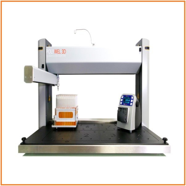 Automated tubes and bottles filler POLYWEL is a rapid, versatile, and accurate tubes and bottle filler for laboratories. The device allows the distribution of media, diluents, and other liquids in different containers, from 1 to 9999.9 ml.