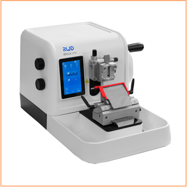 The S700 rotary microtome is a semi-automatic paraffin microtome that embeds tissue in wax and then slices it. Paraffin sections can be used to detect various clinical diseases or help researchers explore tissue and cell levels.